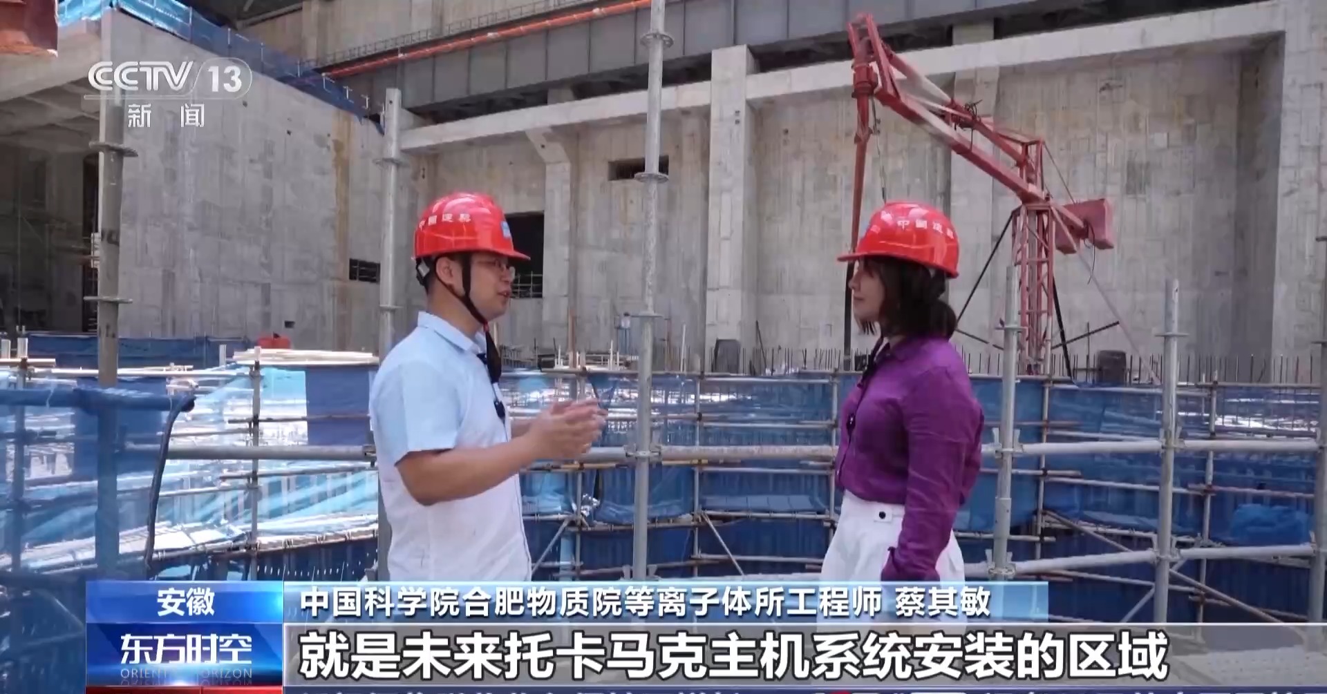 中国科学院合肥物质院等离子体所工程师 蔡其敏:在未来托卡马克主机系统安装的区域,未来高达1亿度等离子体的运行就在这里。在我们的装置里面,冰火两重天,1亿摄氏度的高温等离子体要与零下269摄氏度的低温共同存在一个罐体里面。